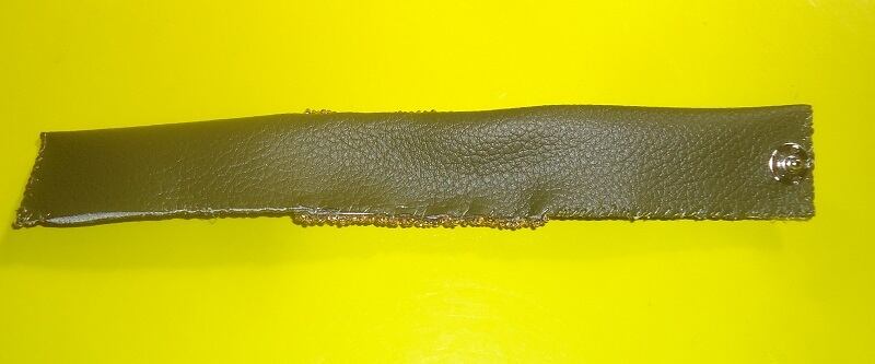 合皮をボタンで留め、縦幅:約2.2~3cm、横幅:約18~19cmぐらいの