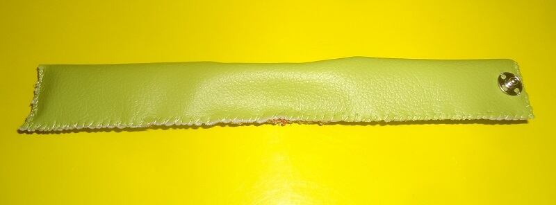 合皮をボタンで留め、縦幅:約2.2~3cm、横幅:約18~19cmぐらいの