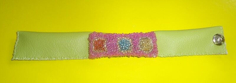 合皮をボタンで留め、縦幅:約2.2~3cm、横幅:約18~19cmぐらいの