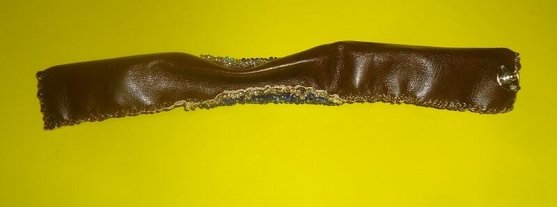 合皮をボタンで留め、縦幅:約2.2~3cm、横幅:約18~19cmぐらいの