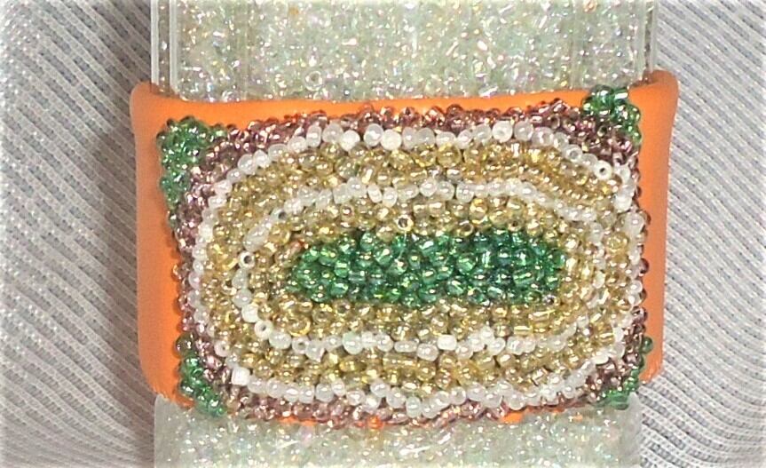 センターは、バロックで若干サイズの違う丸く小さなガラスビーズを、