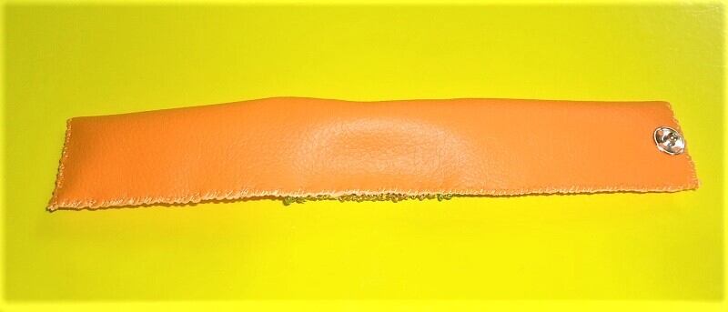 合皮をボタンで留め、縦幅:約2.2~3.5cm、横幅:約18~19cmぐらいの